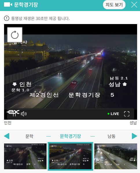구간 소통정보를 클릭하면 해당 노선의 CCTV를 확인할 수 있습니다.