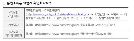 - 신청할 때와 똑같이 4대 보험 가입장, 자영업, 플랫폼 근로 등 어떤 근로형태든 OK